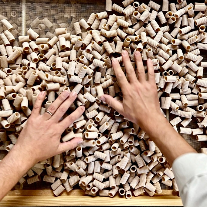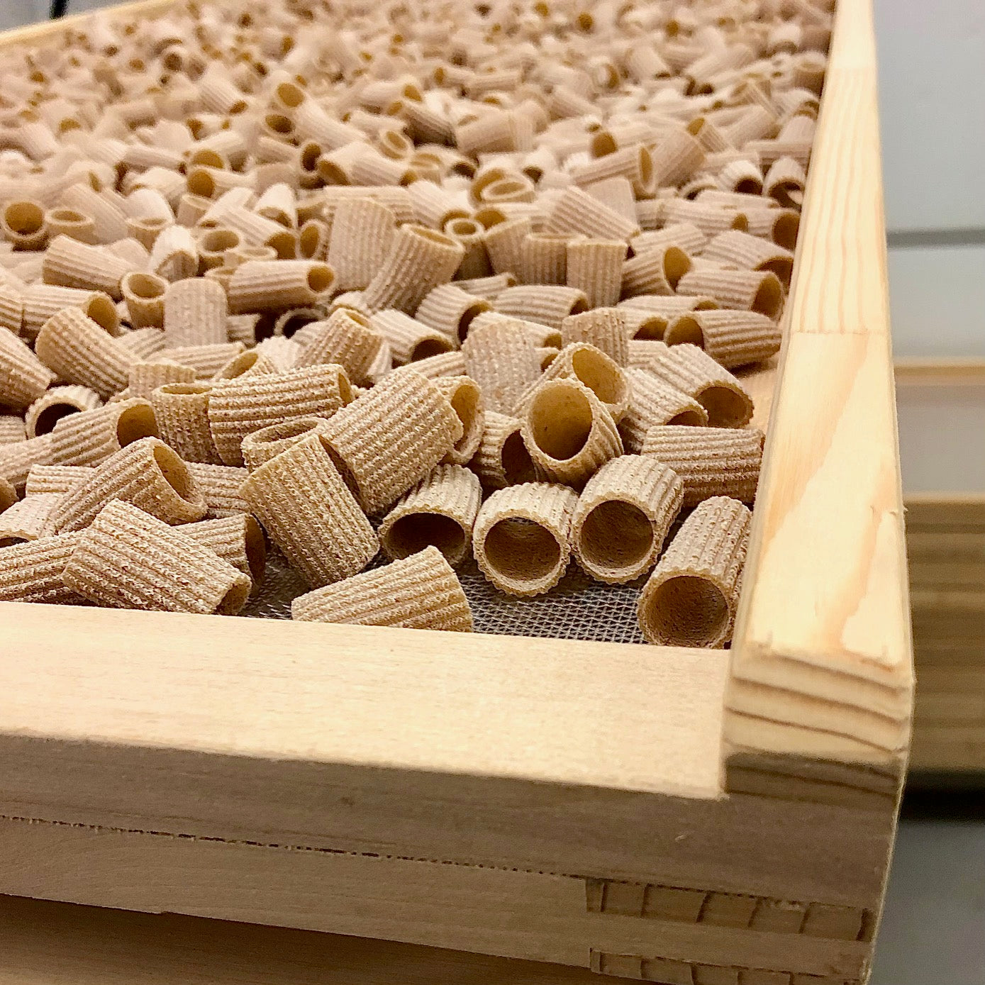 Our pasta follows a slow static drying curve of at least 36 hours, peaking at 46°C. It takes patience, but it preserves aroma, colour, nutrition and bite. That satisfying texture when the pasta holds beautifully in your mouth? It’s slow time doing its work. -